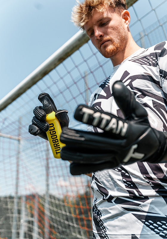 エンボスラテックスの表面は、時に最適な ボールコントロールを保証し、正確で安全なディフェンス動作を可能にする。